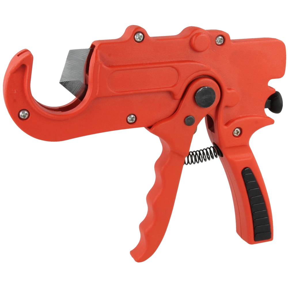 The cutter is used for burr-free cutting of conduit plastic pipes and flexible hoses. The blade is retractable from any position. IT is made of tool steel and oil-hardened.