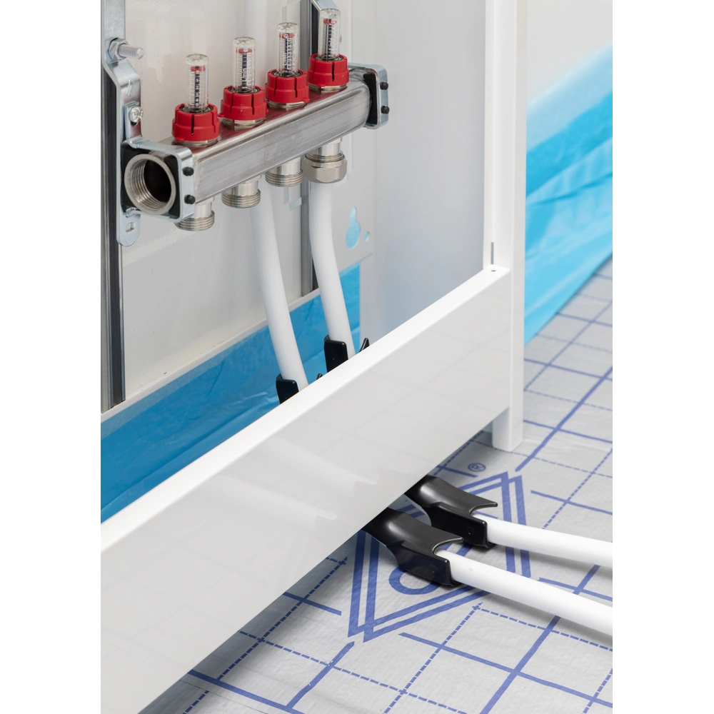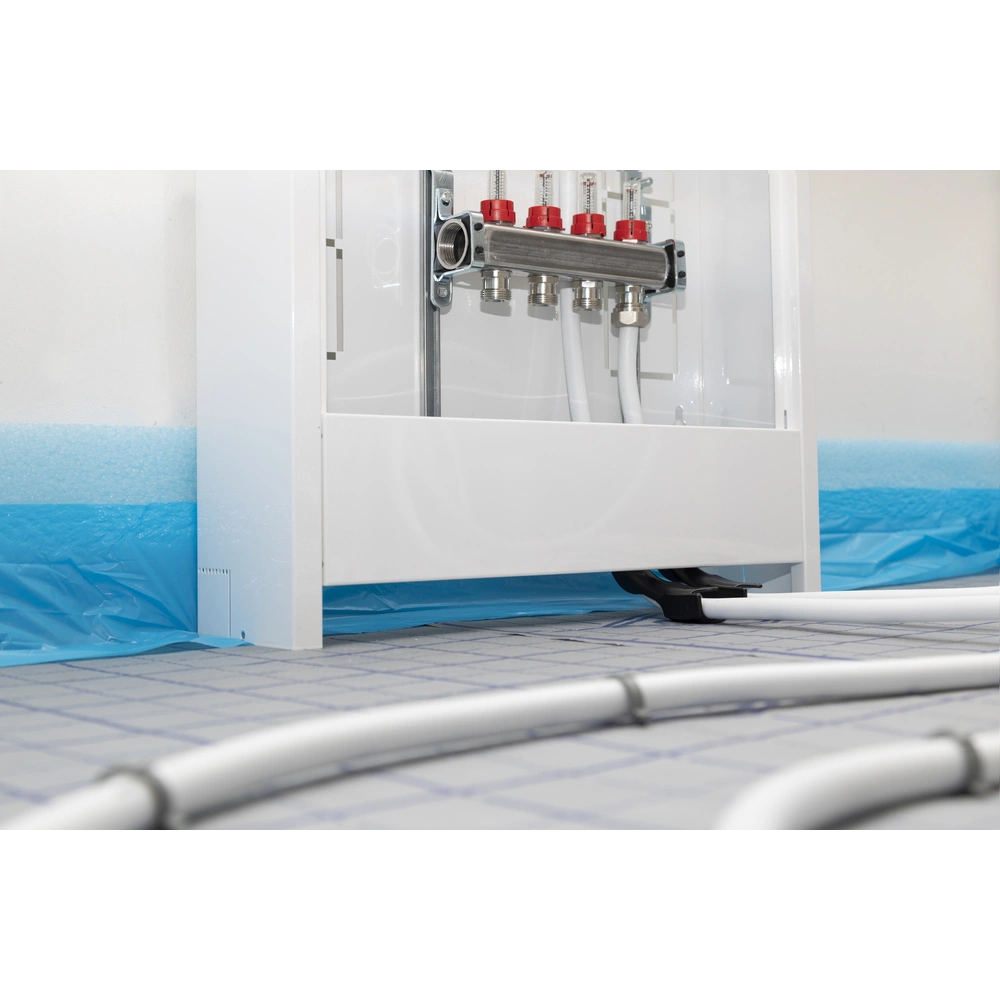 All product informationPlastic bend for safe and damage-free diversion of the heating pipe for distributor inlet, ceiling break-throughs and other diversions with 90° angles.