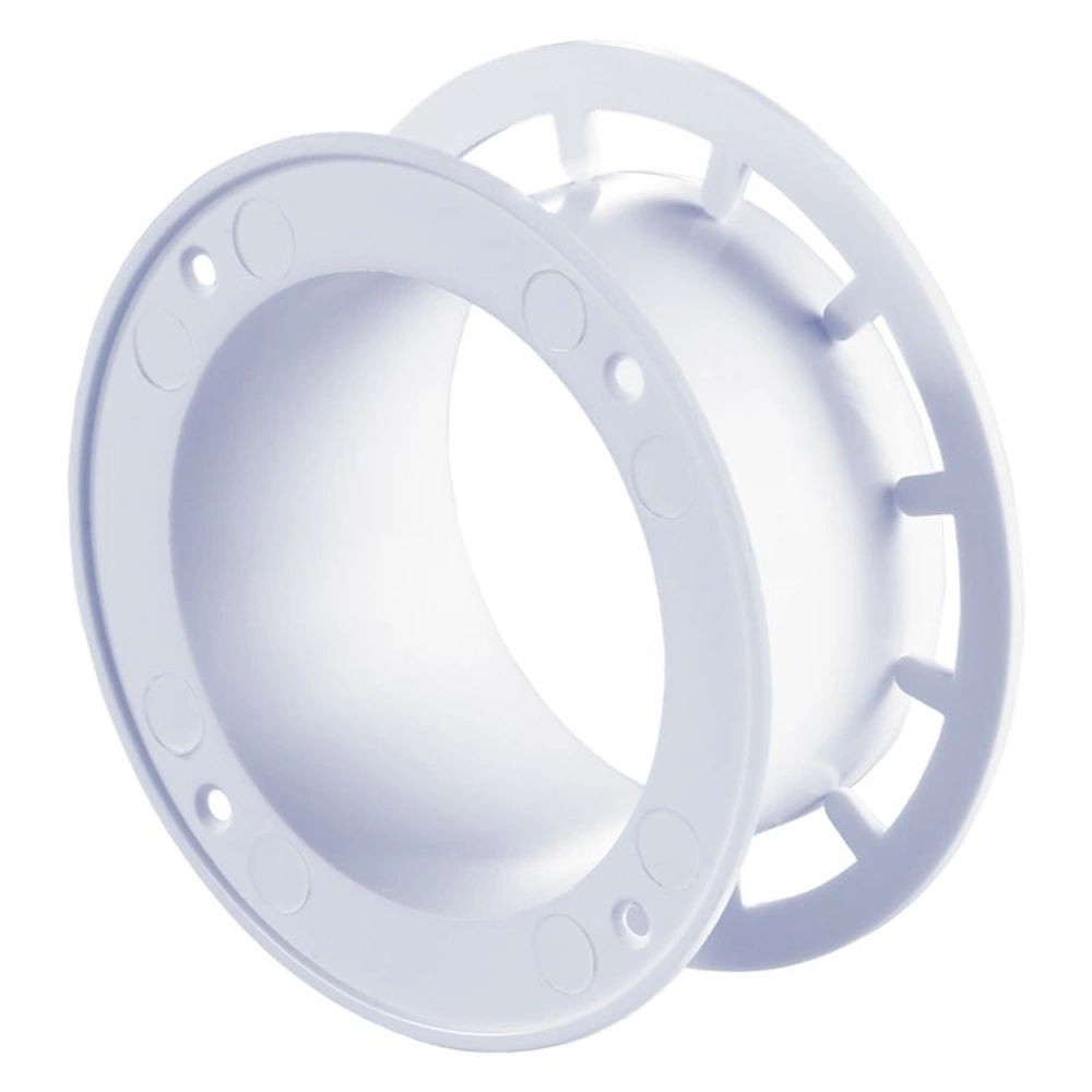 Connection spigot made of polystyrene with lock ring for mounting round, flexible air ducts to walls or ceilings.