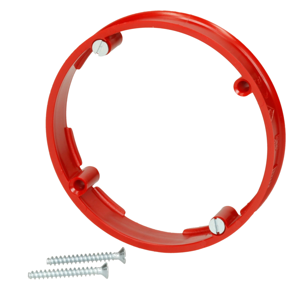 All product informationPlaster compensation ring for levelling recessed flush-mount boxes and junction boxes and for maintaining the specified IP rating. The compensation ring is supplied with 2 prefitted device screws and 2 ring‑mounting screws.