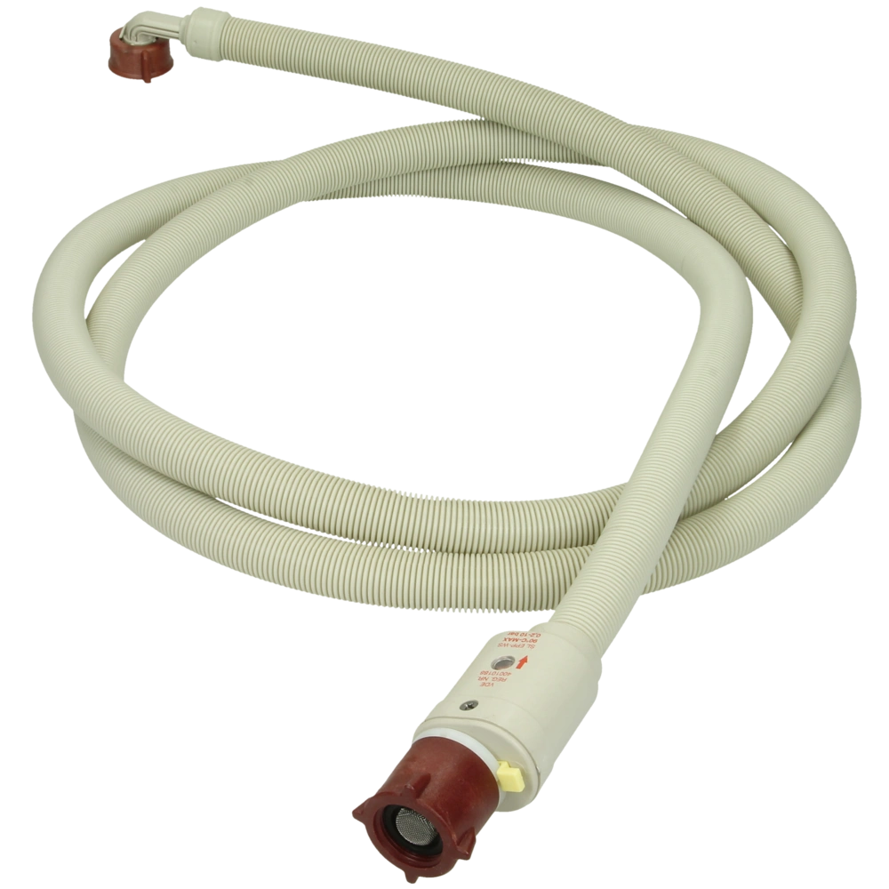 All product informationThe safety supply hose for washing machines and dishwashers with hose rupture safety device being triggered at a pressure of 60 bar at +25 °C. The hose-in-hose system protects against water damage reliably. In case of leakage or supply hose rupture, the water is collected by the outer sheath and the shut-off valve triggers.