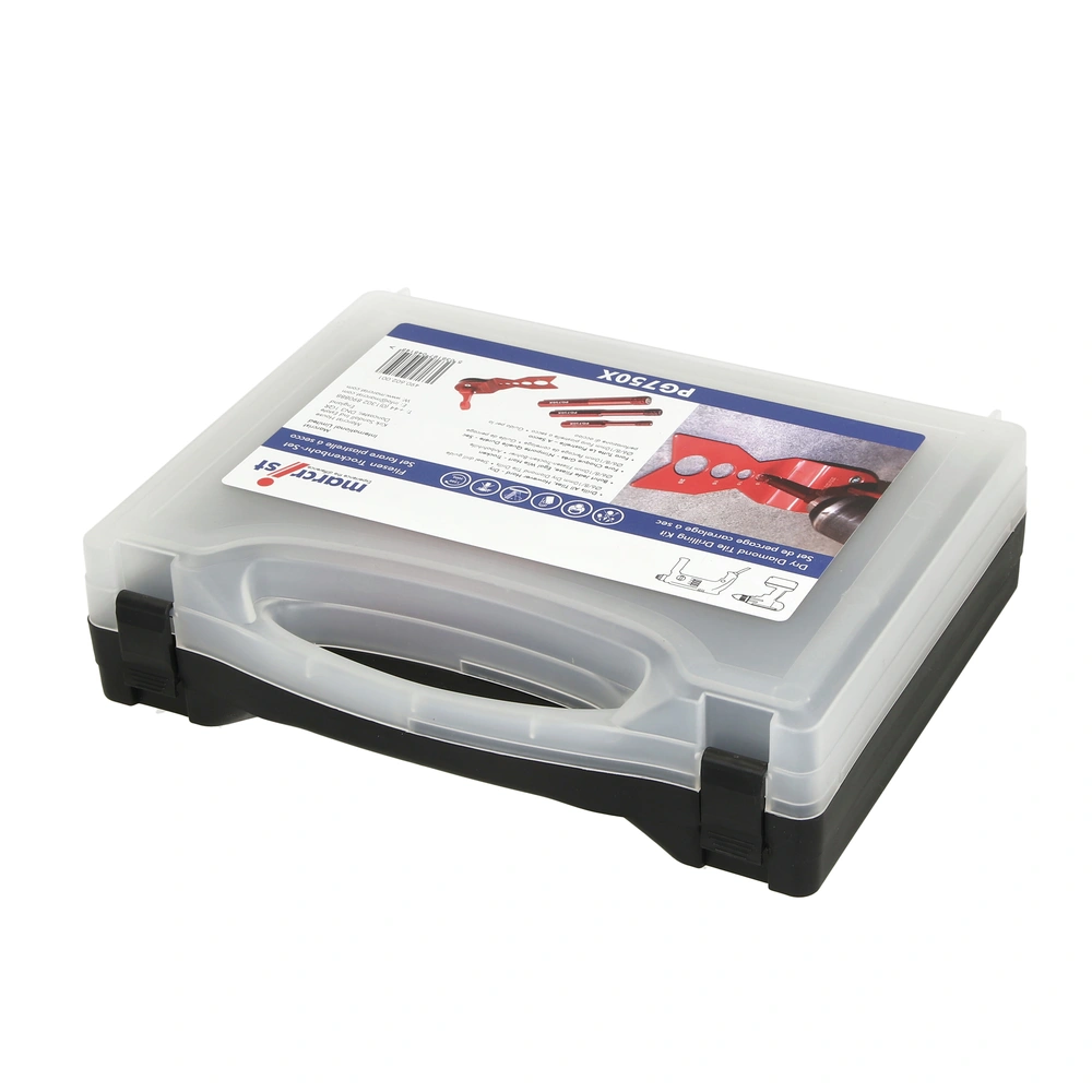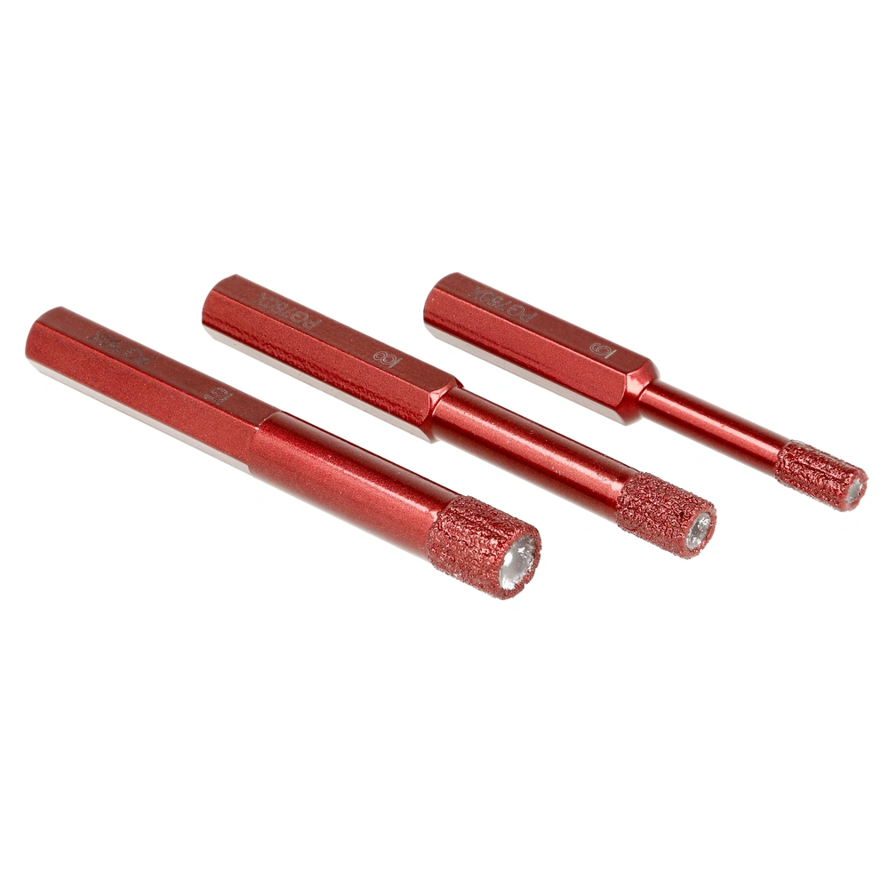 All product information Scope of deliveryDiamond tile drills in a set of 3 plus drilling template for professional dry drilling of tiles, porcelain, mosaic tiles and hard granite. The drill is durable and extremely fast. The drilling template prevents slipping when you start drilling.