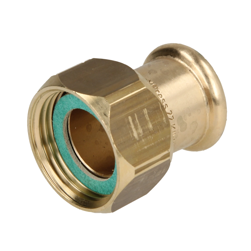 Gunmetal press fitting with M press profile for installation in potable water systems and heating systems.