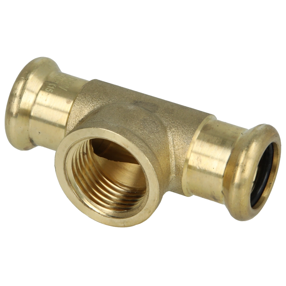 Brass press fitting with M press profile for installation in drinking water systems and heating systems.