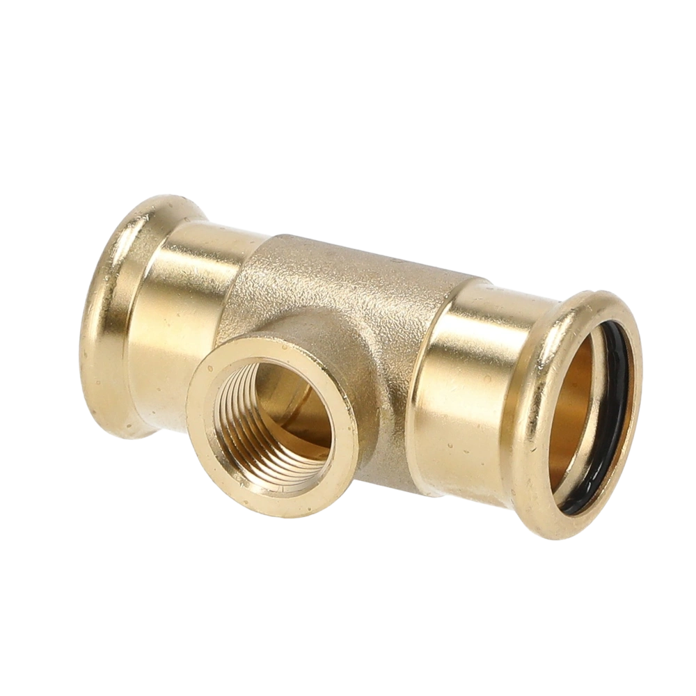 Gunmetal press fitting with press contour M for mounting in drinking water installations and heating systems.