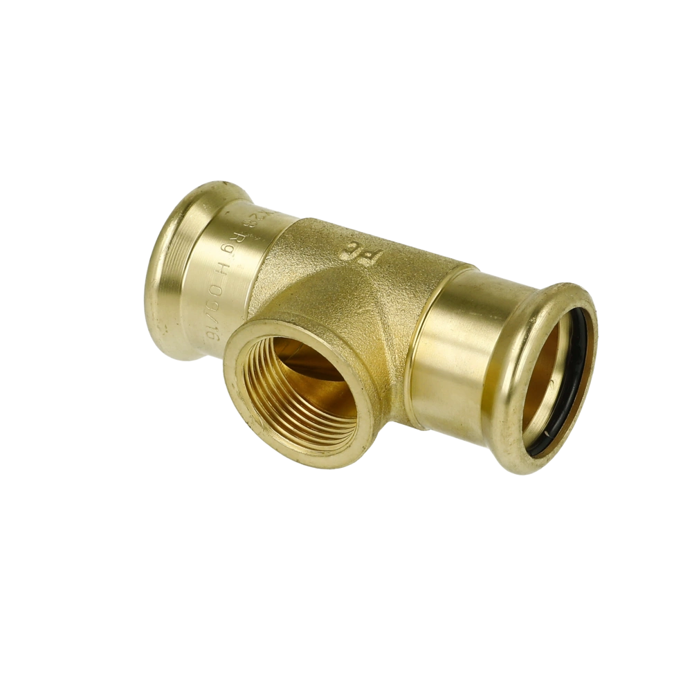 Brass press fitting with M press profile for installation in drinking water systems and heating systems.