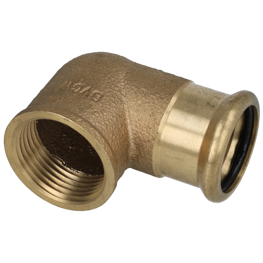 Gunmetal press fitting with M press profile for mounting in potable water installations and heating systems.