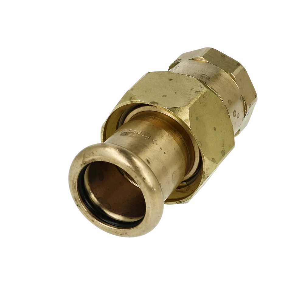 Gunmetal press fitting with M profile for installation in potable water systems and heating systems.