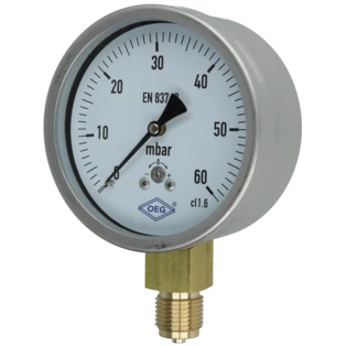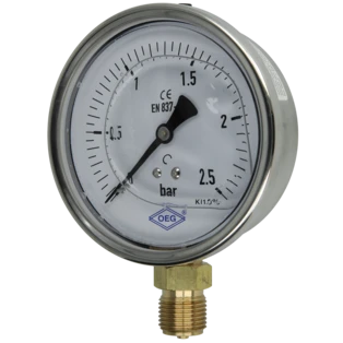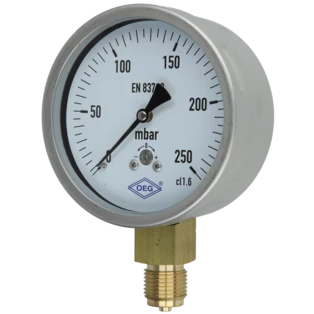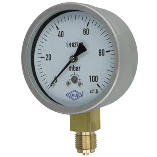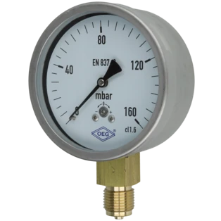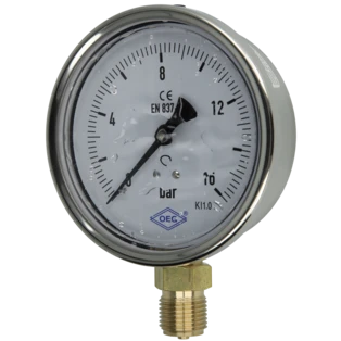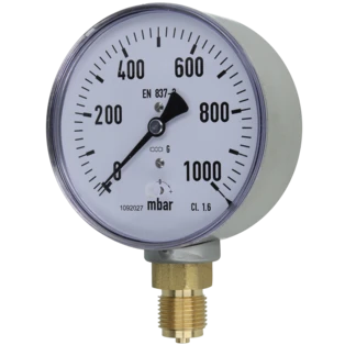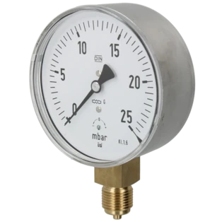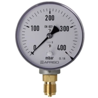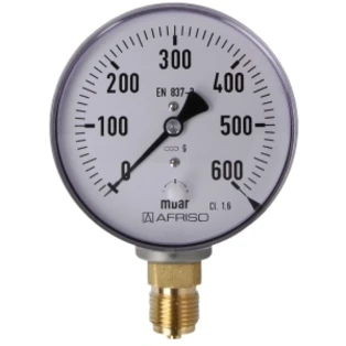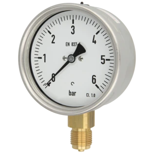 Pressure gauge for measuring the pressure in gases or liquids that do not attack the copper pipes. Bourdon-tube gauges are suitable for gaseous and liquid, non highly viscous and non-crystallising media, capsule-type pressure gauges for gaseous, dry media