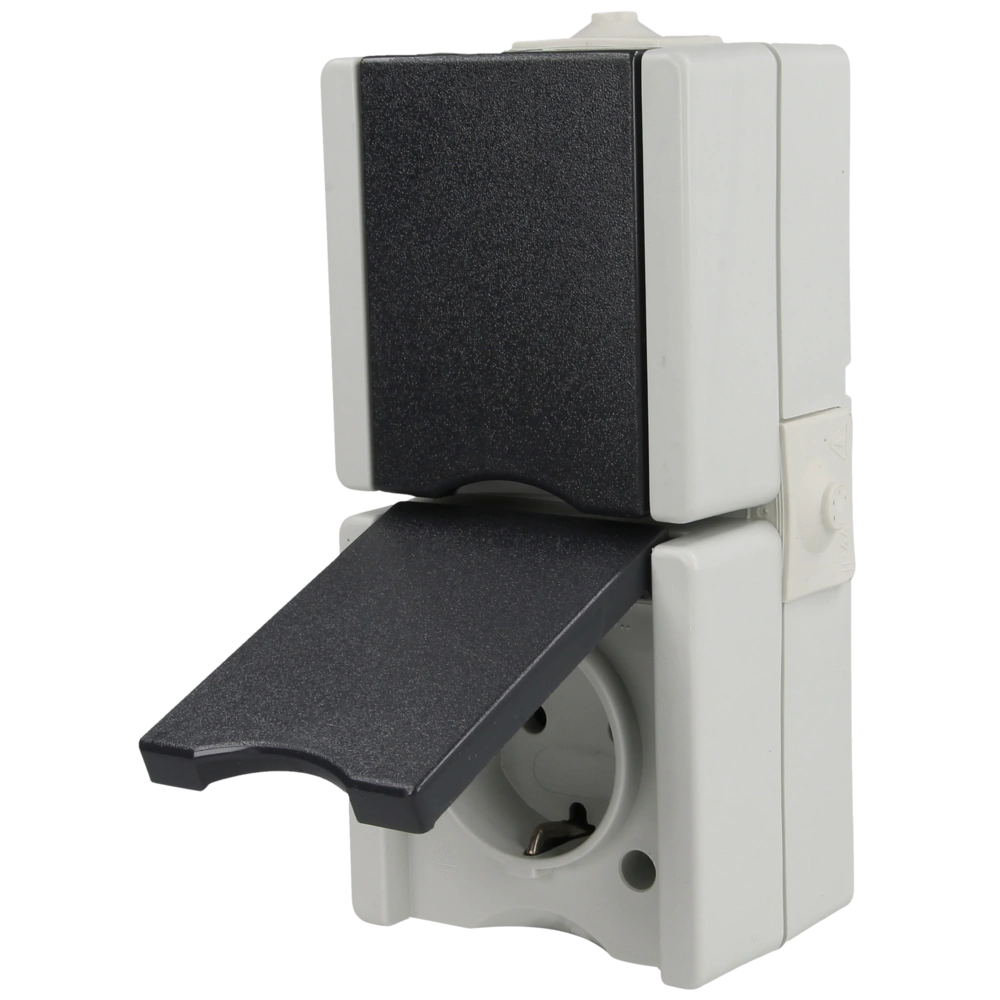 The high-quality, surface-mounted earthed socket outlet in timeless design is suitable for damp rooms. It has removable socket bases.
