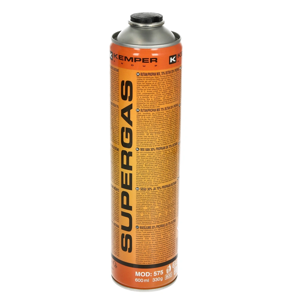 Butane/propane mixture for flame temperatures up to 1,800 °C. The connection for the burner has a universal 7/16" thread. Due to its high propane content, it is well suited for work in cold conditions. Not suitable for 360° applications.