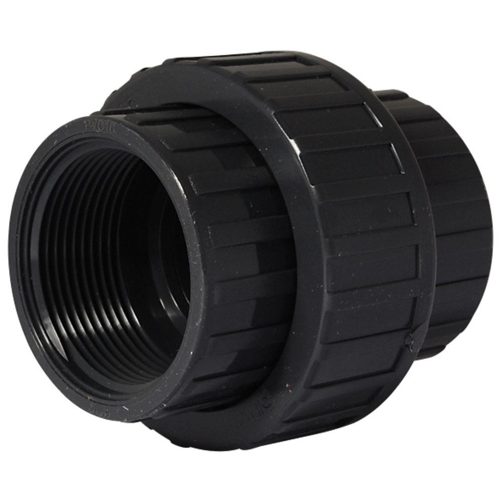 Union made of chemical- and corrosion-resistant rigid PVC for professional pipe system construction.