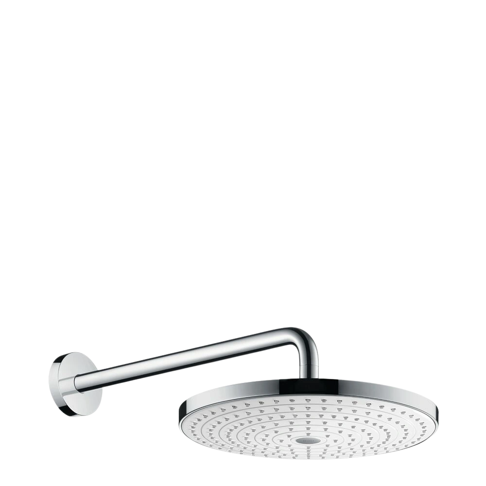 The head shower Raindance Select S 300 provides two spray modes. It can angle-adjusted thanks to an integrated ball joint and is supplied including a 390 mm shower arm.