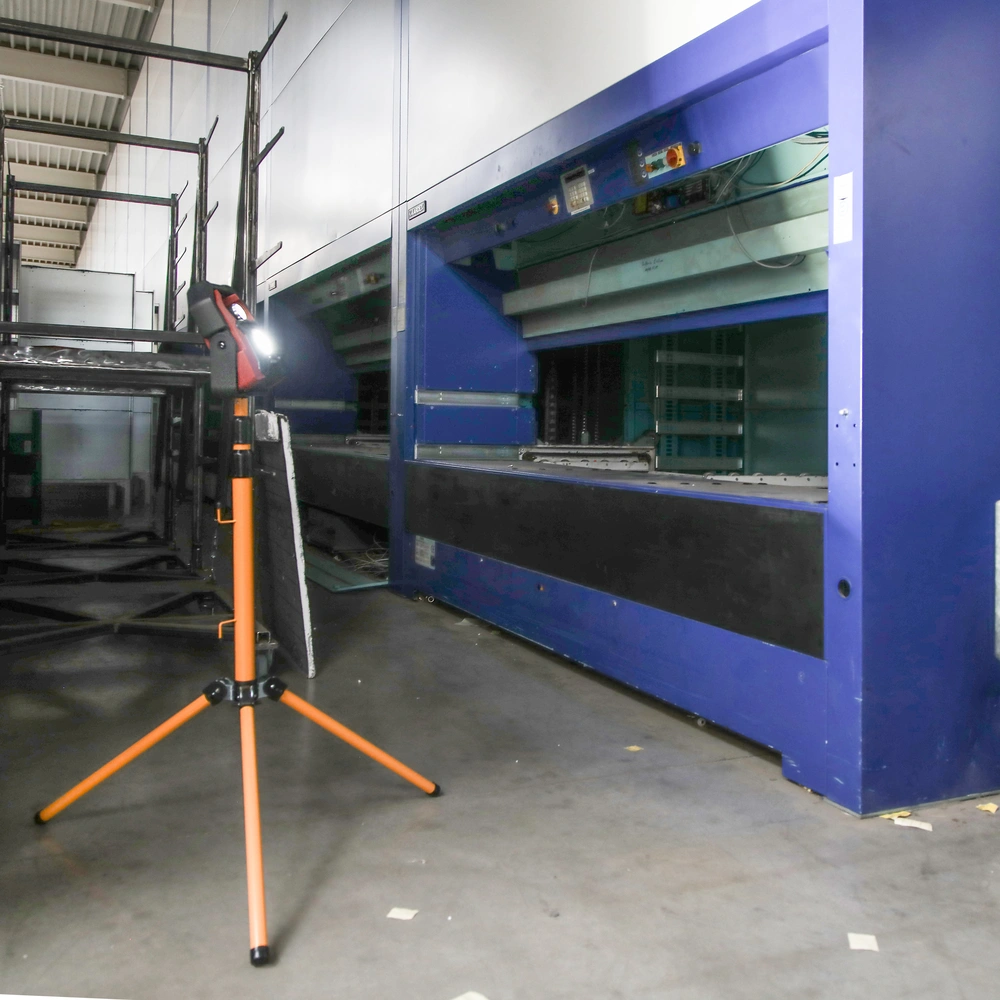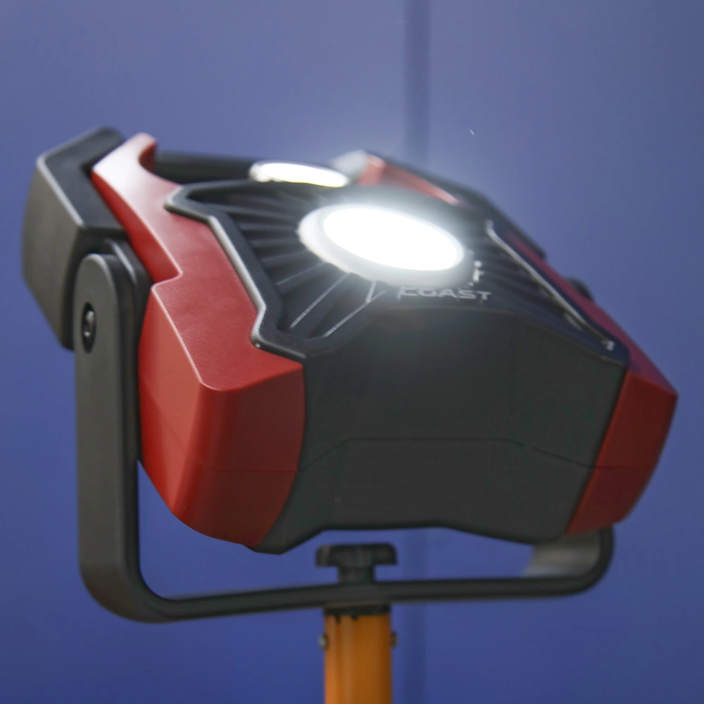 Rechargeable work light with wide-angle flood beam and spot beam. The handle also serves as stand and allows for flexible adjustment of the dust- and splash-proof light. A tripod holder is integrated...