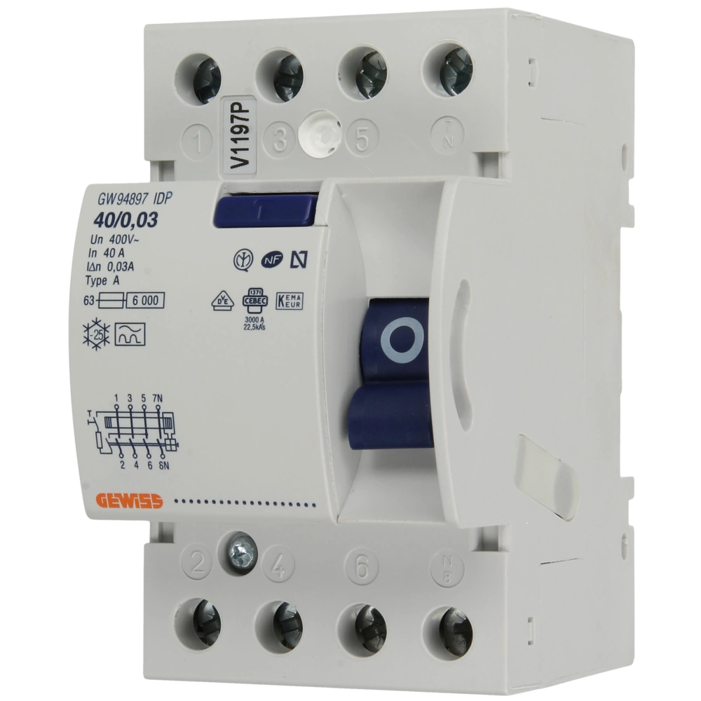 4-pole type A RCCB for automatic disconnection of electric circuits as soon as the permitted residual current is exceeded and for the protection against life-threatening situations caused by insulation faults or dangerous contact voltage.