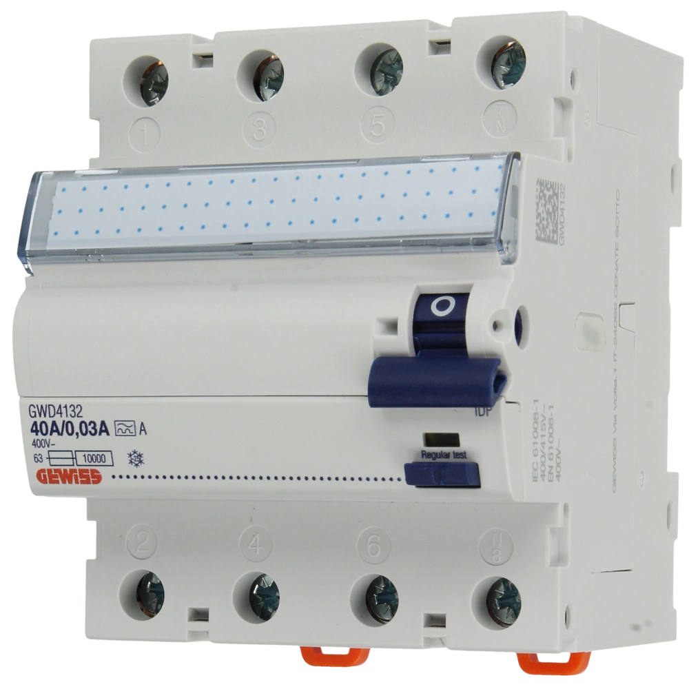 4-pole type B RCCB for automatic disconnection of electric circuits as soon as the permitted residual current is exceeded and for the protection against life-threatening situations caused by insulation faults or dangerous contact voltage.