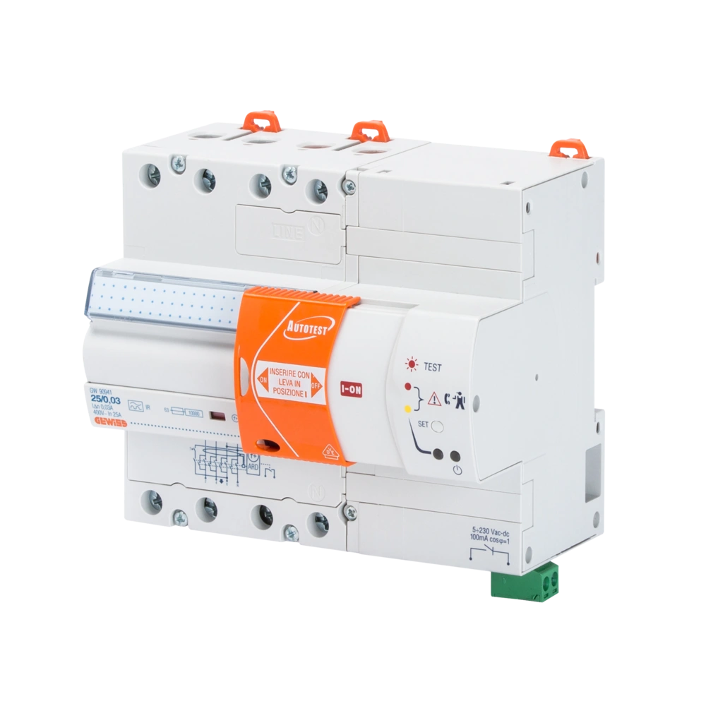 All product informationIntelligent residual current circuit breaker with automatic self-test without voltage interruption. During the test phase, bypass contacts take over the power supply to the system and the function of the residual current circuit breaker is ensured via an additional protective device. After the test, the main contacts switch back on. Ideal for cooling systems and other industrial applications where a continuous power supply is required.