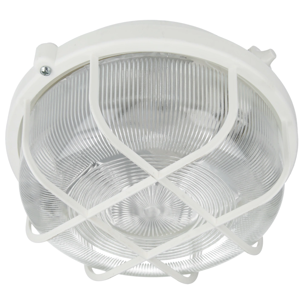 Round ceiling luminaire is used in technical rooms, on building façades or in sanitary applications. The luminaire is made of plastic with a cover made of prismatic glass.