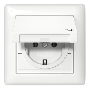 SCHUKO-socket flap lid 1-f. frame Standard55 pure white,glossy,IP44 insert |