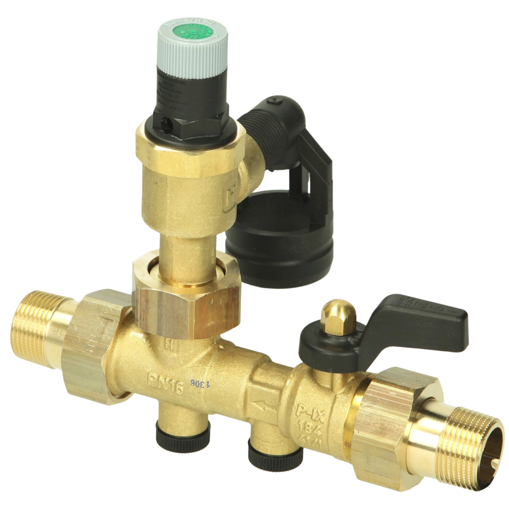 Honeywell SG safety groups are used as protection of pressurised water heaters. They are compact appliances which incorporate all the necessary safety fittings such as check valve, shut-off valve, test point and diaphragm safety valve in one unit. The safety valve protects the downstream water heater by automatically opening and closing. The check valve prevents back pressure, backflow and back siphonage of contaminated water.