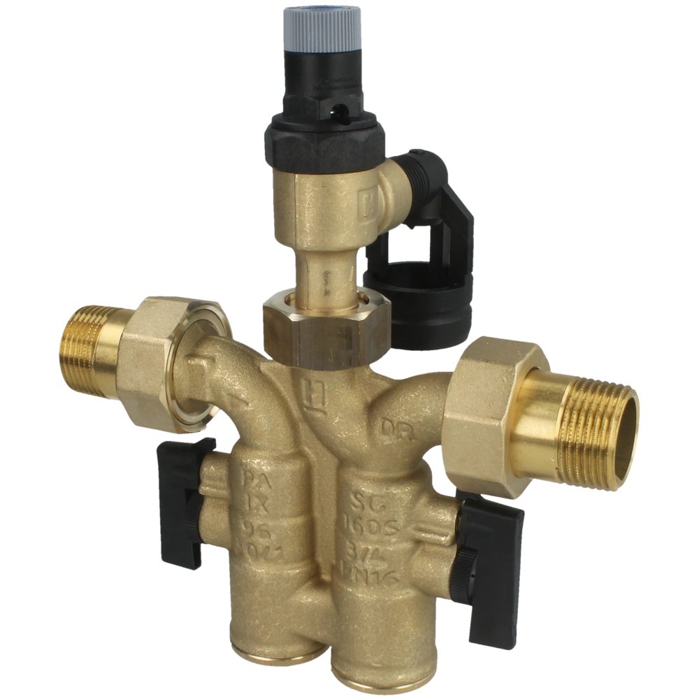 All product informationHoneywell SG safety groups of this type are used as protection of pressurised water heaters. They are compact appliances which incorporate all the necessary safety fittings such as check valve, shut-off valve, test point and diaphragm safety valve in one unit. The safety valve protects the downstream water heater by automatically opening and closing. The check valve prevents back pressure, backflow and back siphonage of contaminated water.