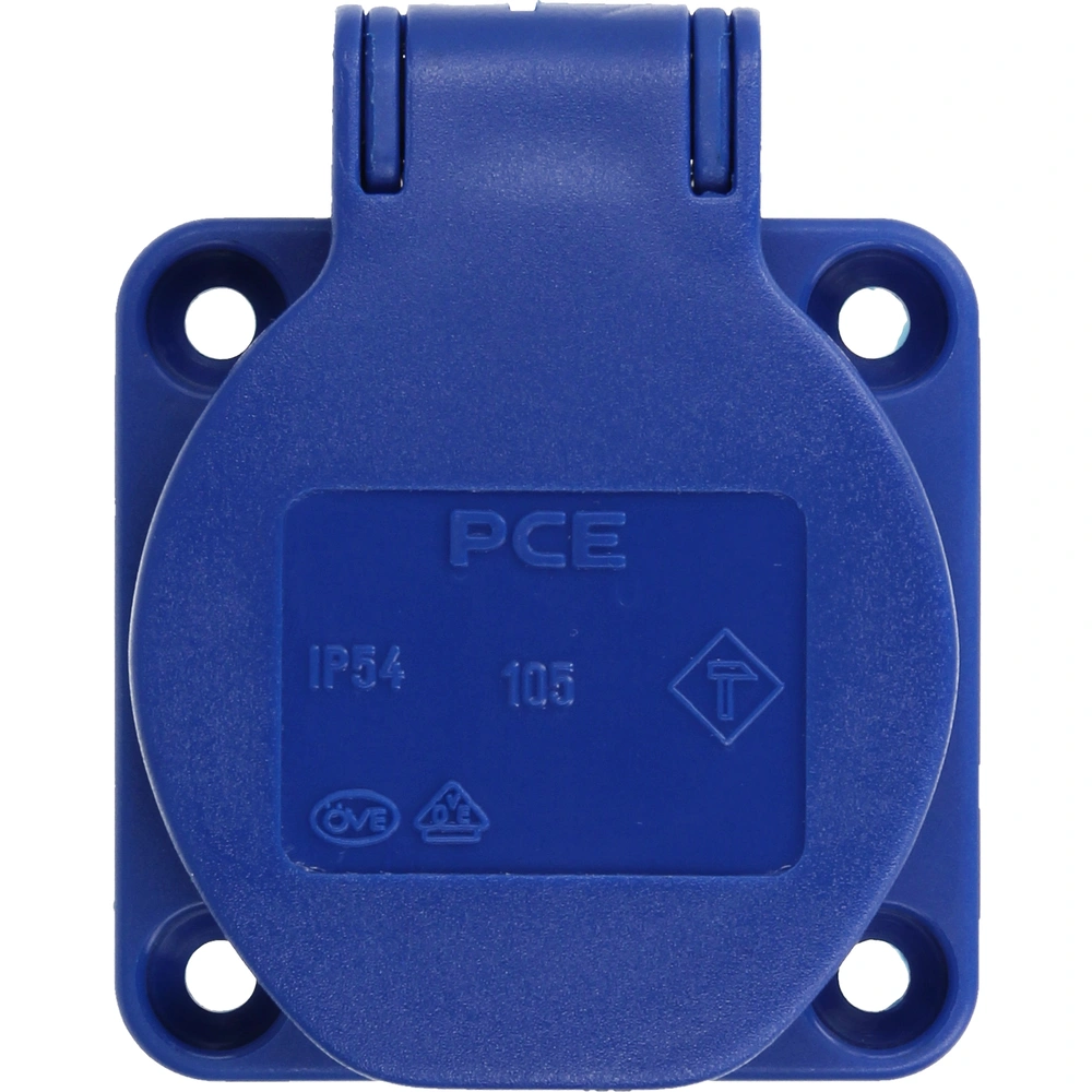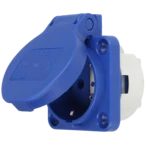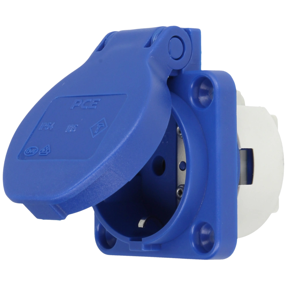 High-pressure watertight safety socket with earth contact and with hinged lid. Quick and easy connection of the cable by screwed terminals.