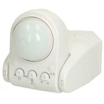 Infrared-controlled motion detector for outdoor wall and ceiling mounting. The detector is provided with a flexibly adjustable sensor head for optimal alignment of the surveillance area. Switch-on time and brightness level are adjustable...