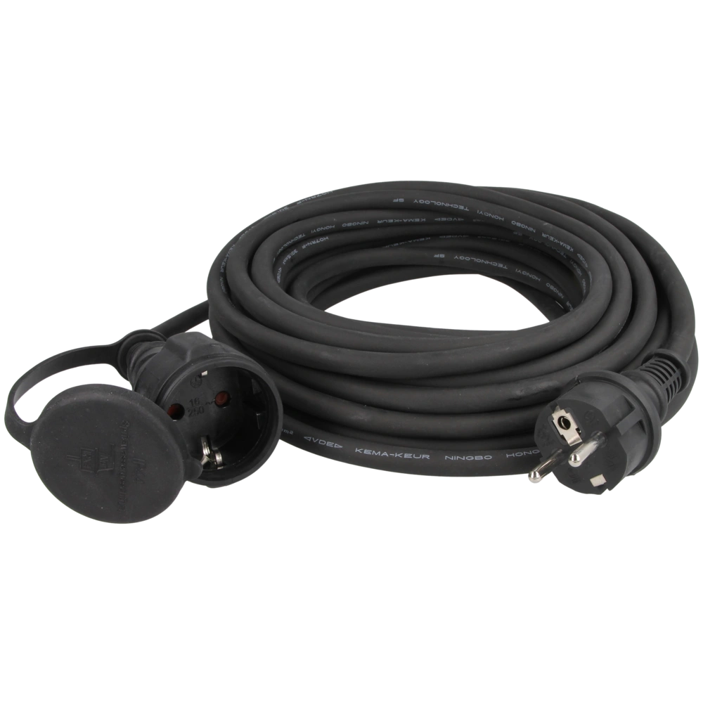 The extension cable in heavy-duty version with Schuko plug and Schuko coupling is very suitable to be used on construction sites or outdoors due to the locking lid.