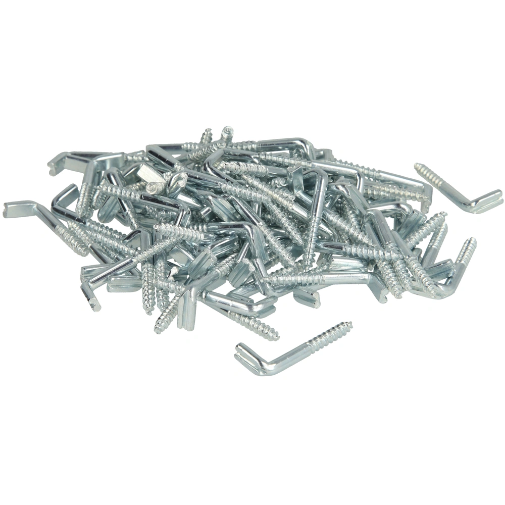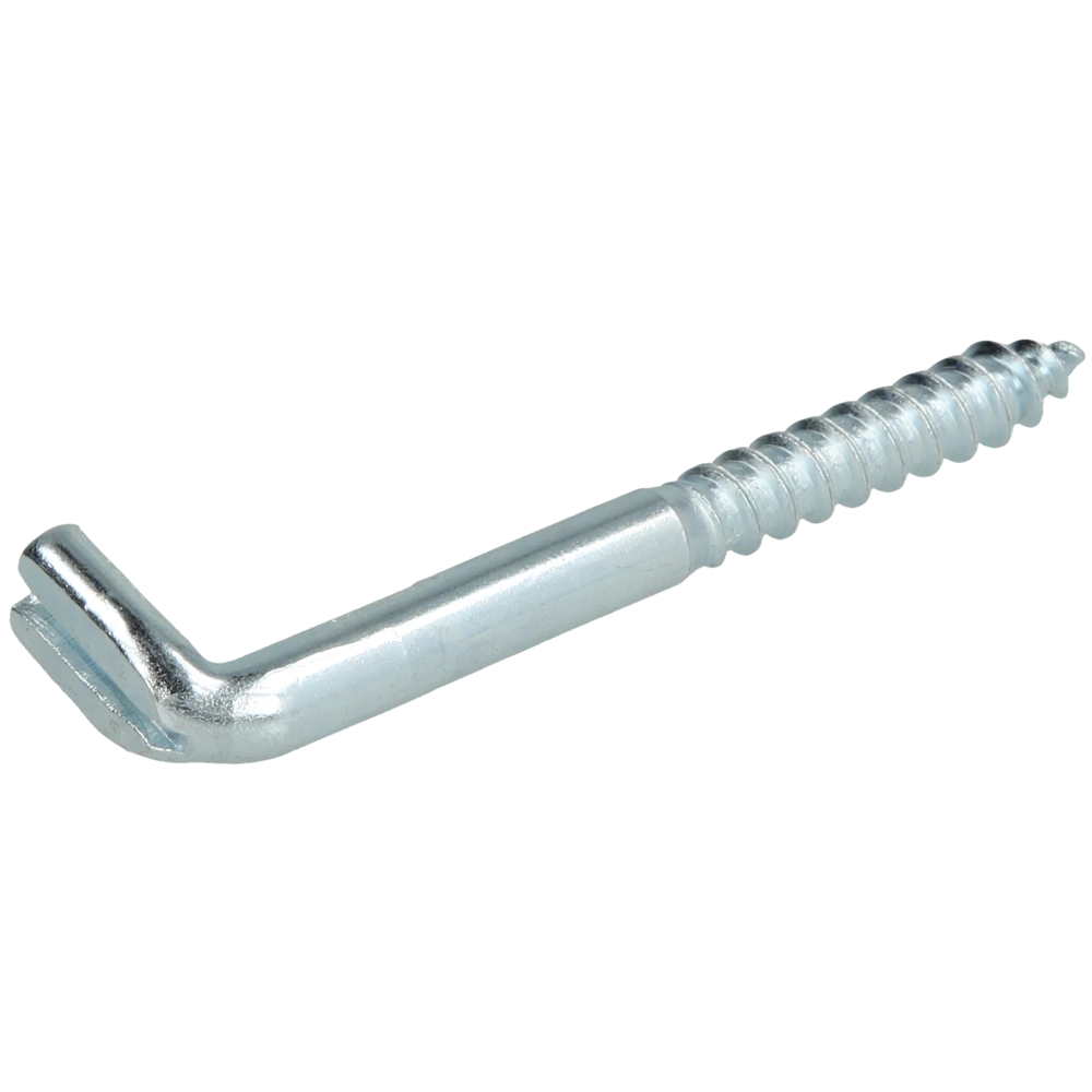 Electrogalvanised screw hook with slot for fastenings in wood.
