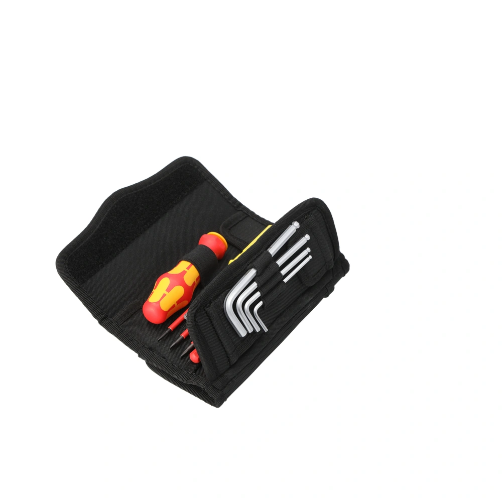 This set is your reliable companion whenever you’re working safely on live parts. The slim, insulated interchangeable blades allow you to reach even deeply seated screws with ease. The ergonomic handle enables rapid blade changes and supports comfortable, effortless working. The included hex keys with special profile provide extra grip in the screw head, prevent rounding and even allow fastening at an angle. This keeps you flexible – even in tight spaces. The robust pouch protects your tools and can be conveniently attached to workshop trolleys, shelving or the Wera 2go system thanks to the hook-and-loop zone.
