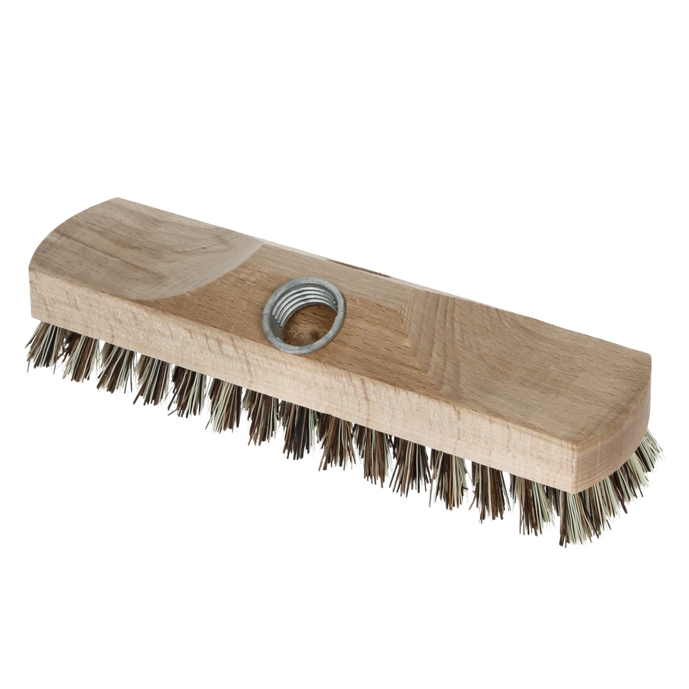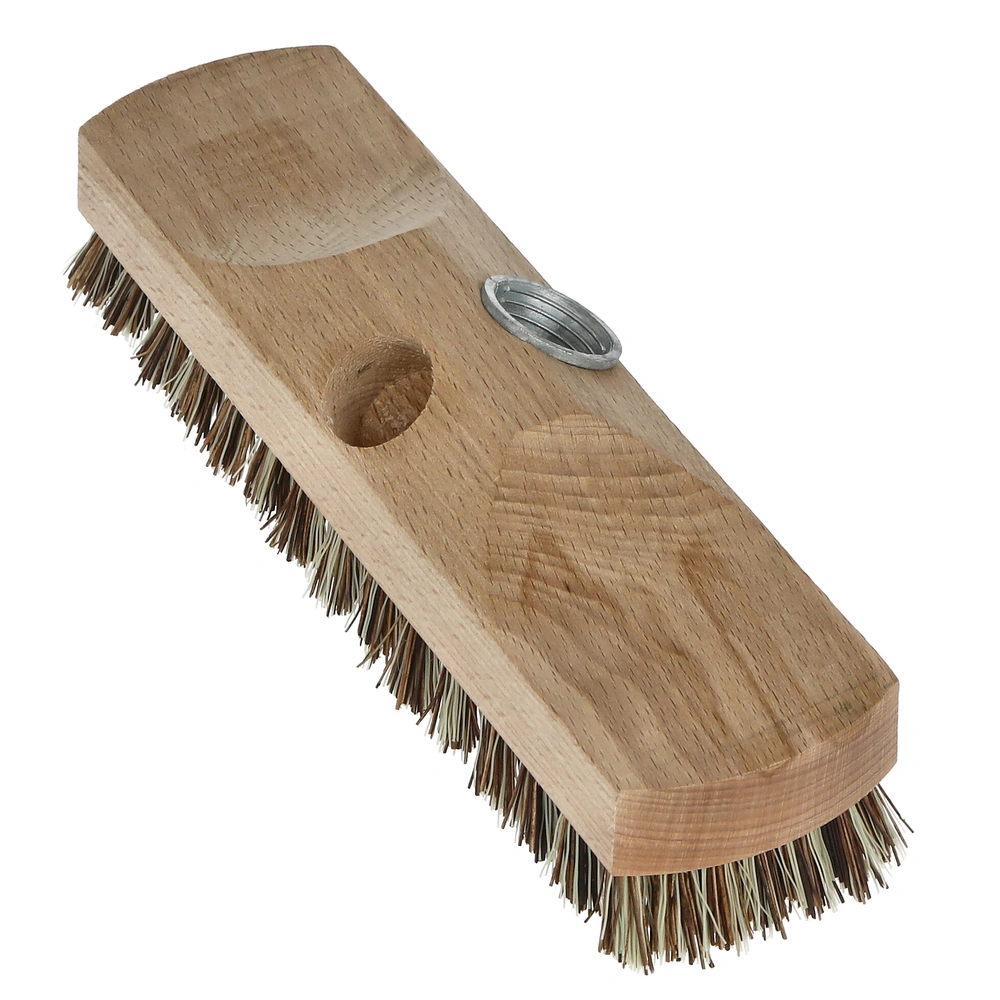 Scrubbing brush made of beech wood with very hard, natural bristles and two different handle attachments. The bristles are heat-resistant, non-breakable and resistant to moisture.