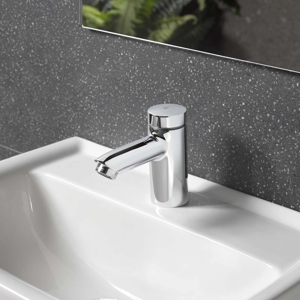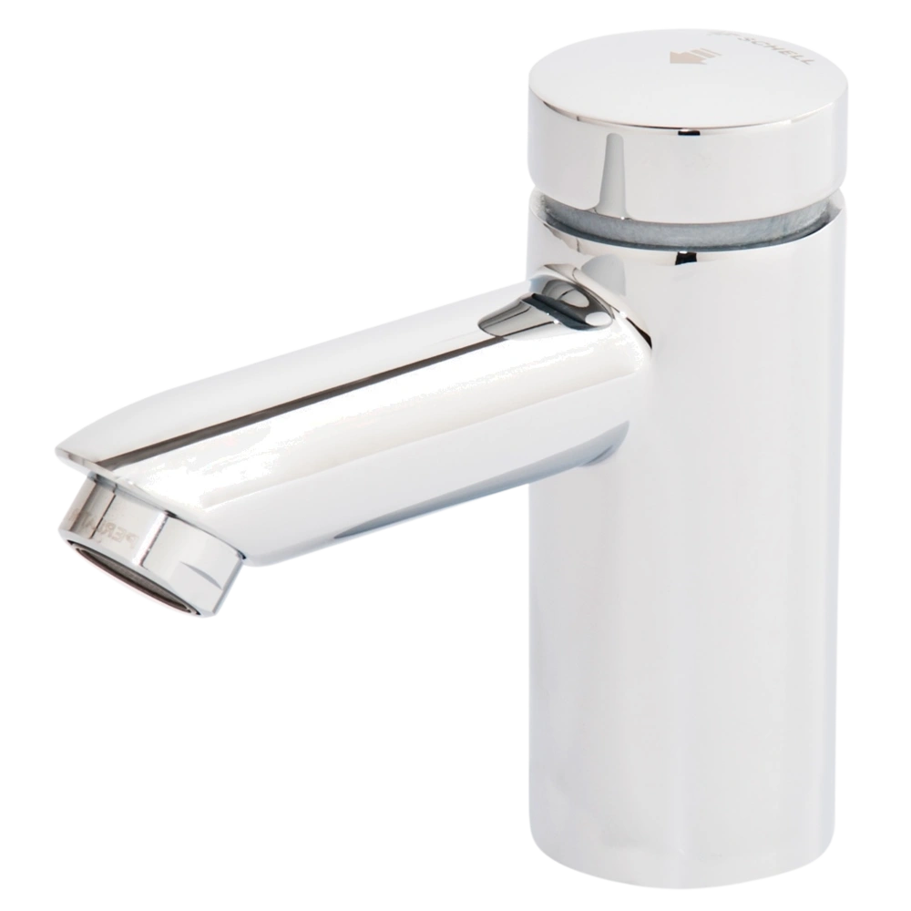 Washbasin fitting with manual activation and automatic closing for single-hole installation. The flow time is adjustable from 2 - 15 seconds. The fitting convinces with high-quality and durable materials.