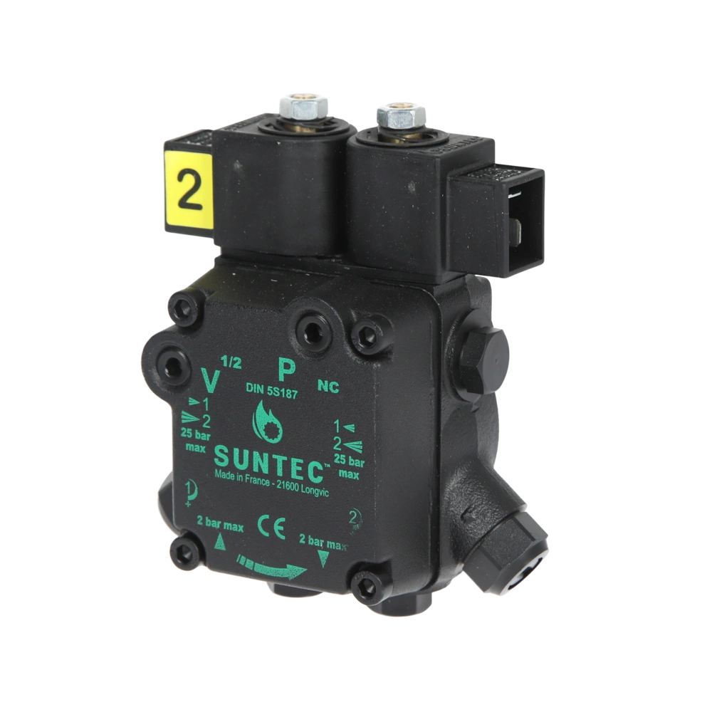 All product informationThe service oil burner pump is suitable for the replacement of almost any oil burner pump in 2-speed version for burners with an output of up to 1 MW. The position of the nozzle outlet can be set optionally on the right or left side. The pump is suitable for light and extra light heating oil, kerosene and biofuels up to B30. The pump is fitted with a pressure relief valve so that the use of LE oil burner nozzles is also possible.