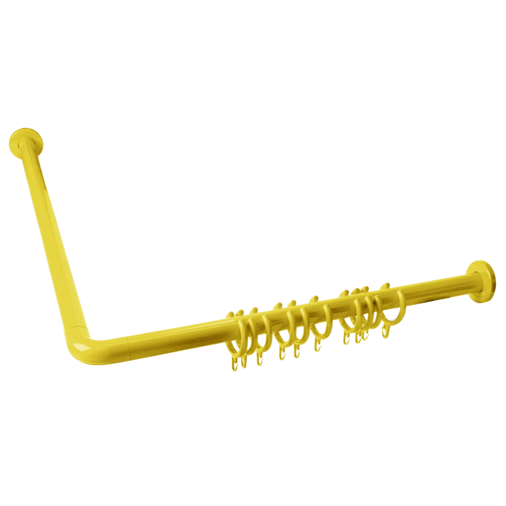 Die Duschvorhangstange ist zweischenklig, sie ist 1000 x 1000 mm lang. Die technische Dokumentation wird hinterlegt.