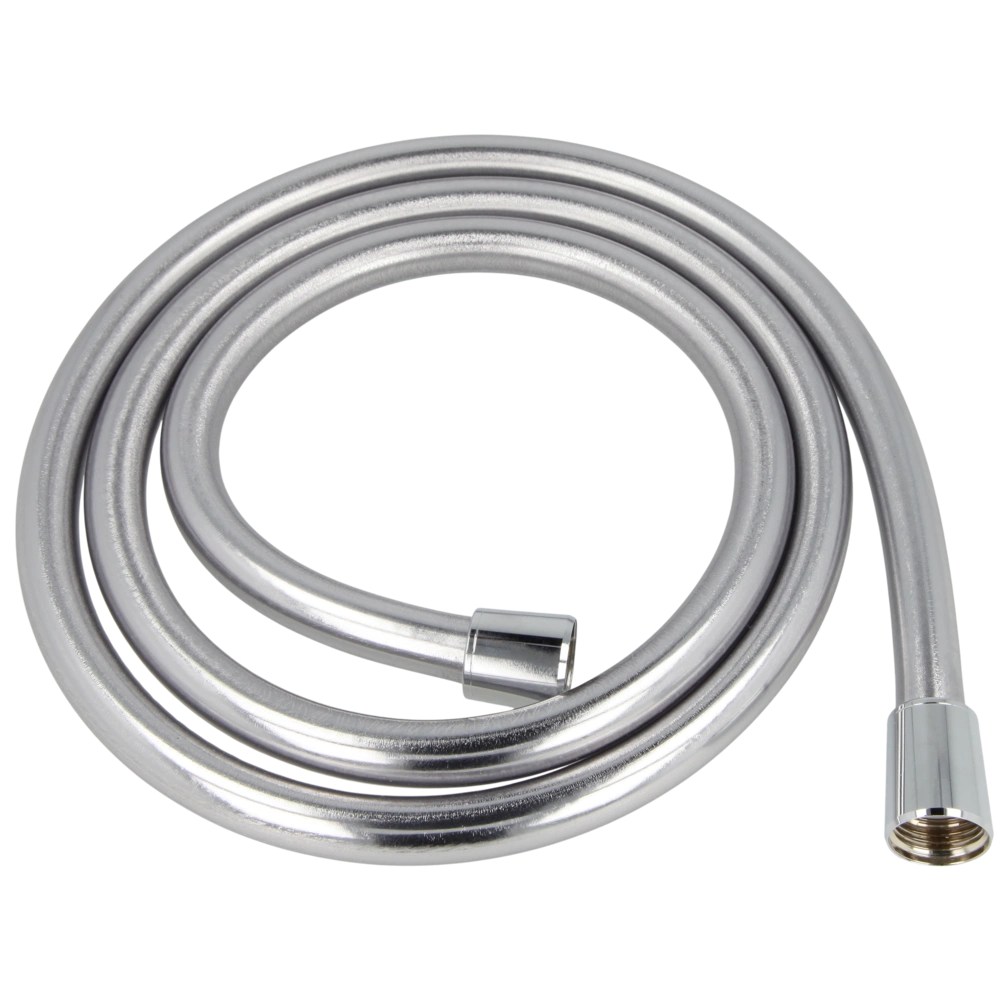 High-quality shower hose made of plastic in metal look. The hose is extremely flexible and kink-protected. The ball-bearing swivel joint in the metal connection prevents hose twisting. Cleaning is particularly easy due to the smooth surface.