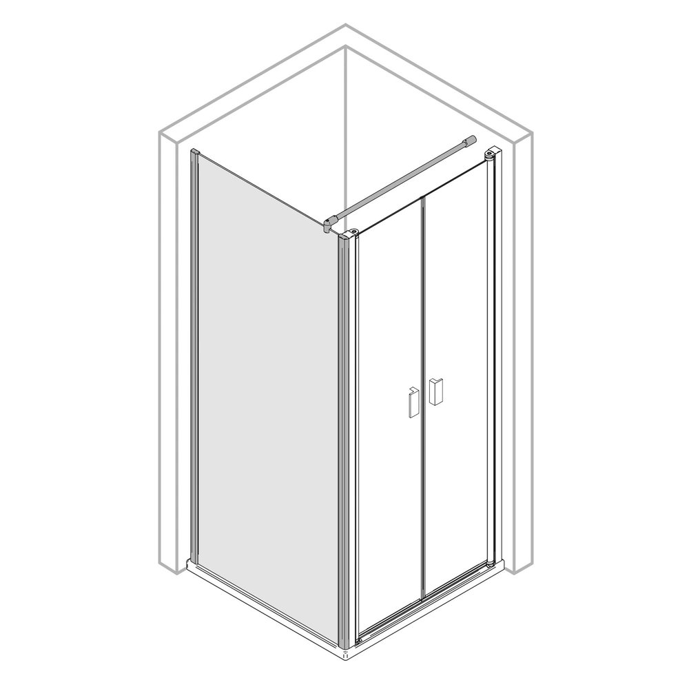 Side panel with crossbar for shower enclosures. The shower panel is installed with a swing door. The special nano sealing of the panes impedes the adhesion of limescale and dirt and makes cleaning easy.