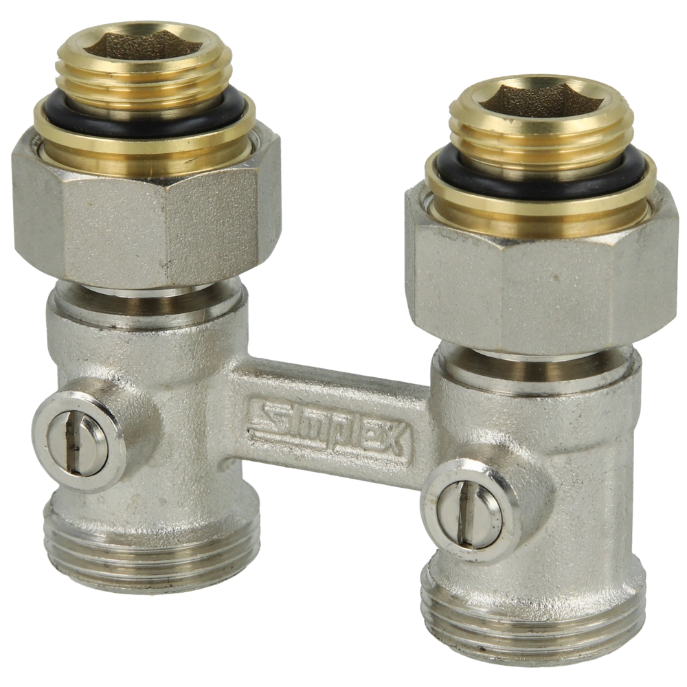 The H-module D1/50 in straight version is suitable for radiators with integrated valve with Rp 1/2" and has a hard chrome-plated ball in a Teflon seat.