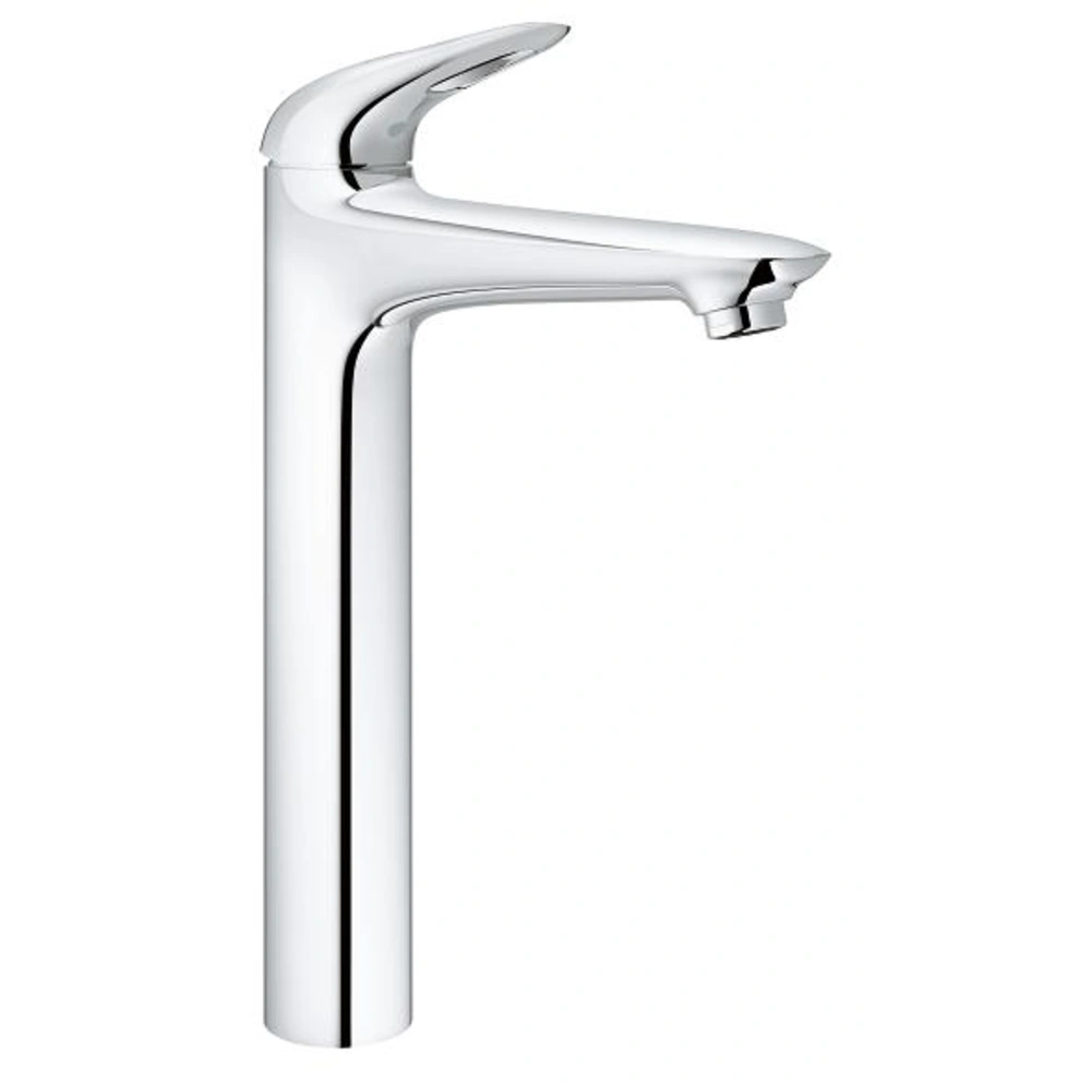 The single-lever basin mixer is suitable for free-standing washbasins due to its height and designed for single-hole installation. It has a loop metal lever and a smooth body. The GROHE StarLight finish is easy to clean and scratch-resistant. The 35 mm SilkMove ceramic cartridge with integrated temperature limiter is in the faucet. The spout is fitted with a mousseur. This is a sieve-like insert separating a single flow of water into many tiny streams. As there is less space for the water to flow through, the water flow is reduced, resulting in water savings.