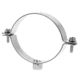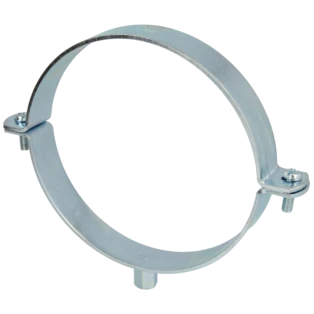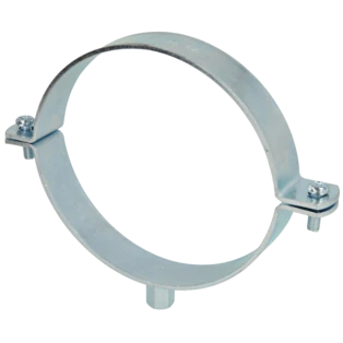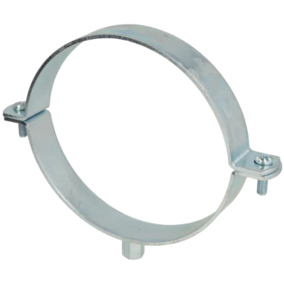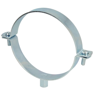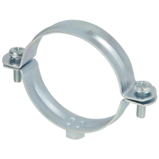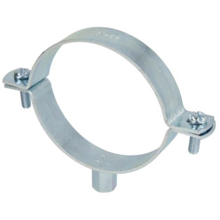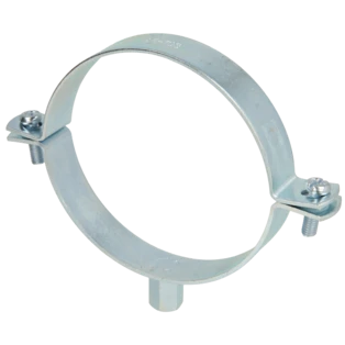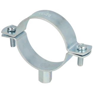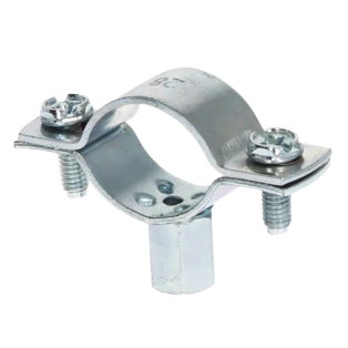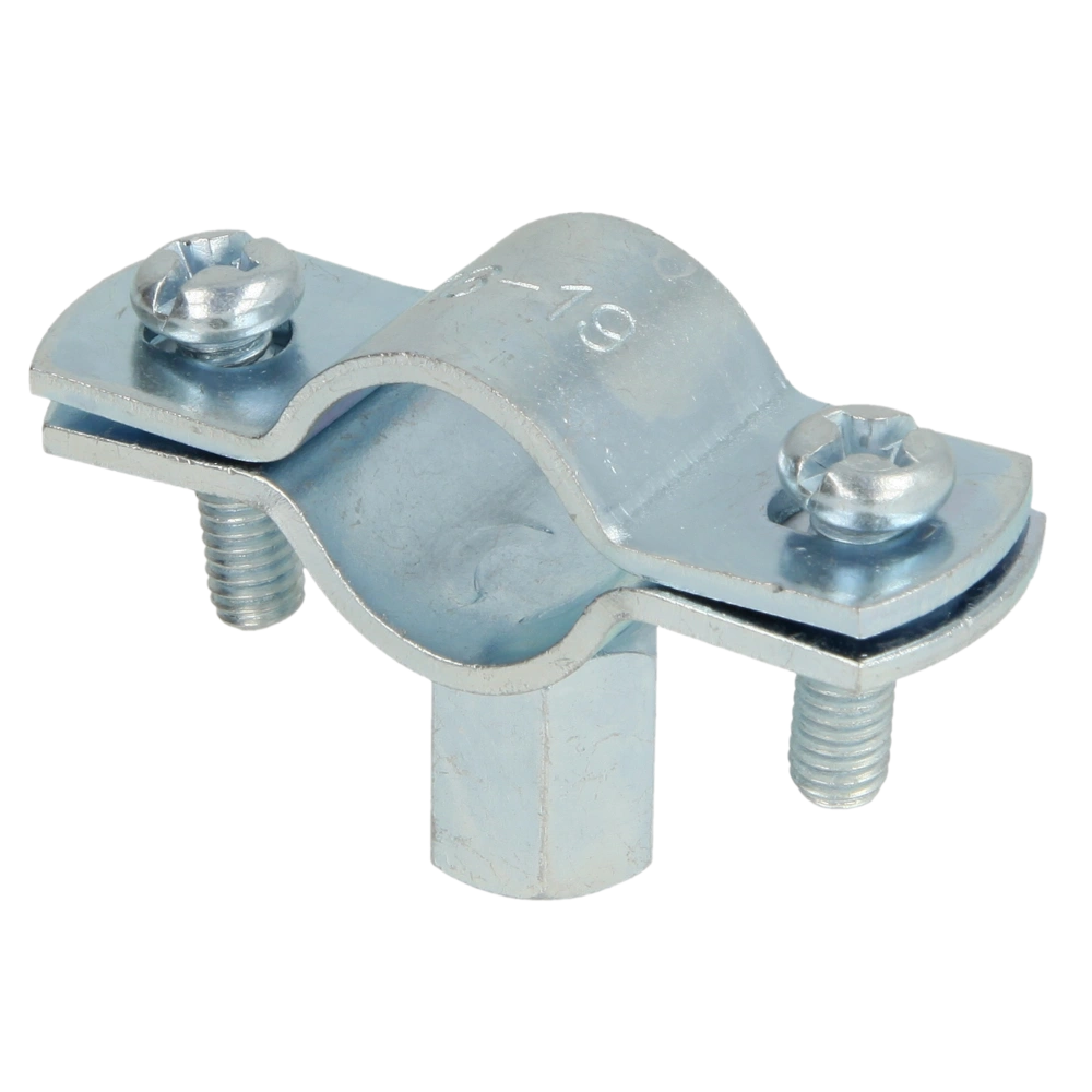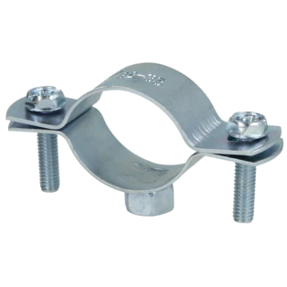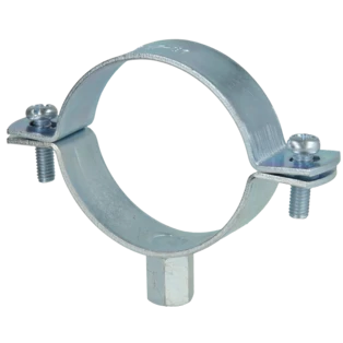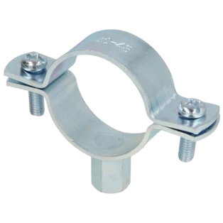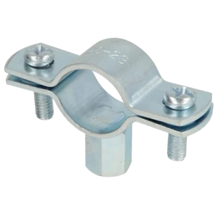 Single-screw pipe clamps for securing pipes to walls, ceilings and floors. The clamps consist of two parts and have a metric connection thread.