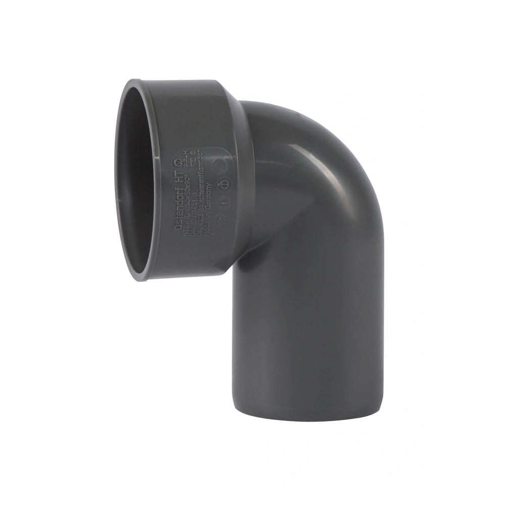 HTsafe siphon bend made of flame-retardant PP-H acc. to DIN 4102 (B1) with single push-fit socket for inserting the siphon rubber for wastewater pipes inside buildings acc. to DIN EN 1451. The pipe is suitable for hot, cold and aggressive wastewater as well as for central vacuum cleaning systems.