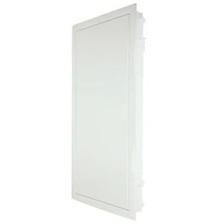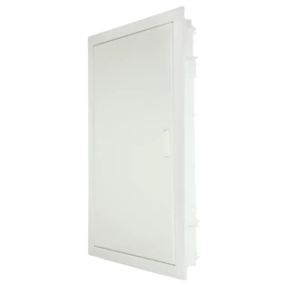 Flush-mounted small distribution boards suitable for the installation in residential buildings. Their distributor rows can be used for devices with an installation depth of 70 mm and up to 63 A.  The support rail provides enough space for a hardly visible wiring. A rail with N terminals and PE terminals is also pre-installed. Pre-punched cable entries make for a simple laying of the cables in the distributor. The blind frame with plaster compensation provides for a flush wall mounting. The door is reversible and can be retrofitted with a lock.
