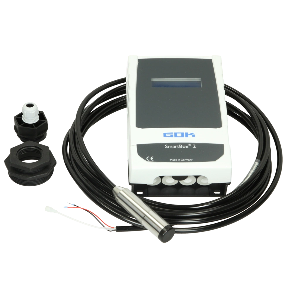 Display unit with 8-digit LCD, hydrostatic sensor (measurement accuracy 1%) with 6 m cable, mounting equipment