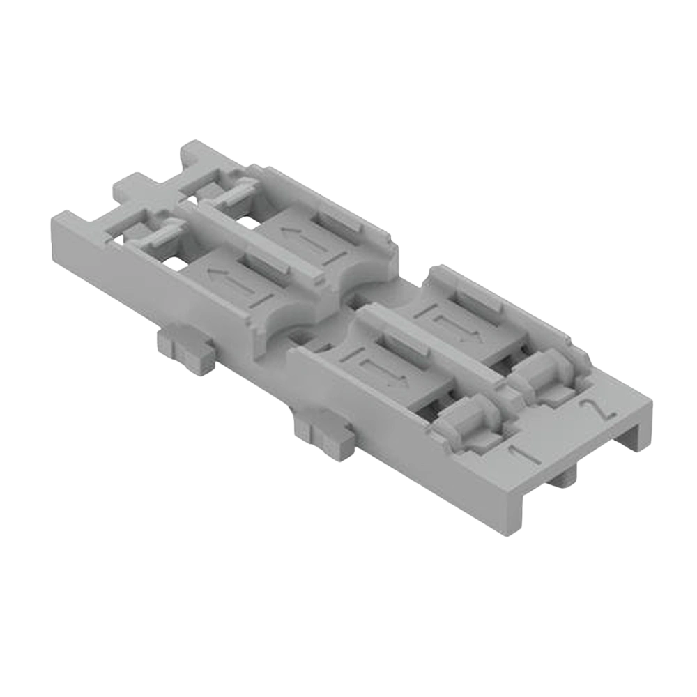 Carrier plate for securing splicing connectors of the 221 series on DIN-rails. The splicing connectors are secured on the carrier plate by a simple snap-in.