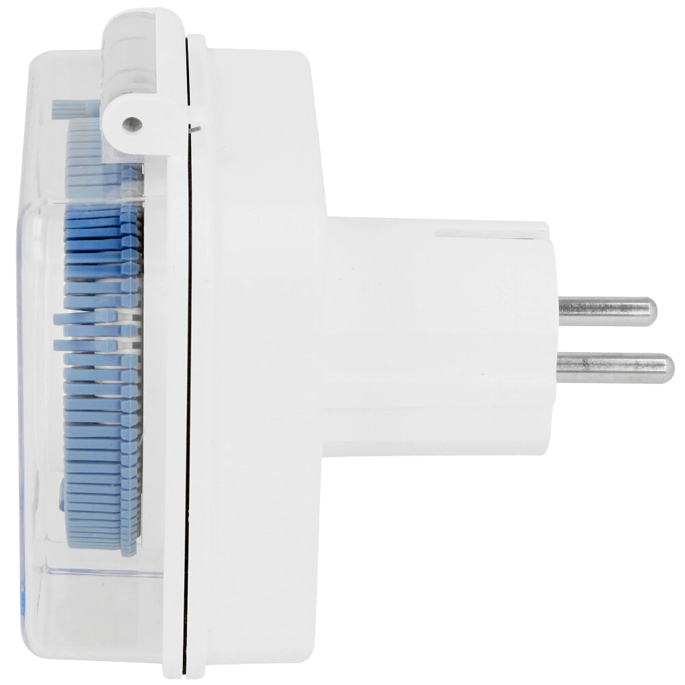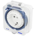 All product informationAnalogue timer with earthing contact for damp rooms and outdoor areas. The daily programmes can be programmed with 15-minute segments. A switching indicator is integrated.
