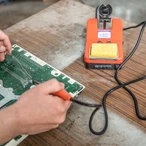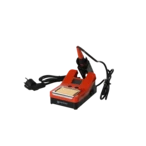 Soldering station for working on electronic components and electric circuits. The temperature can be variably adjusted in the range between 160 and 480° and can be read off on the digital display....