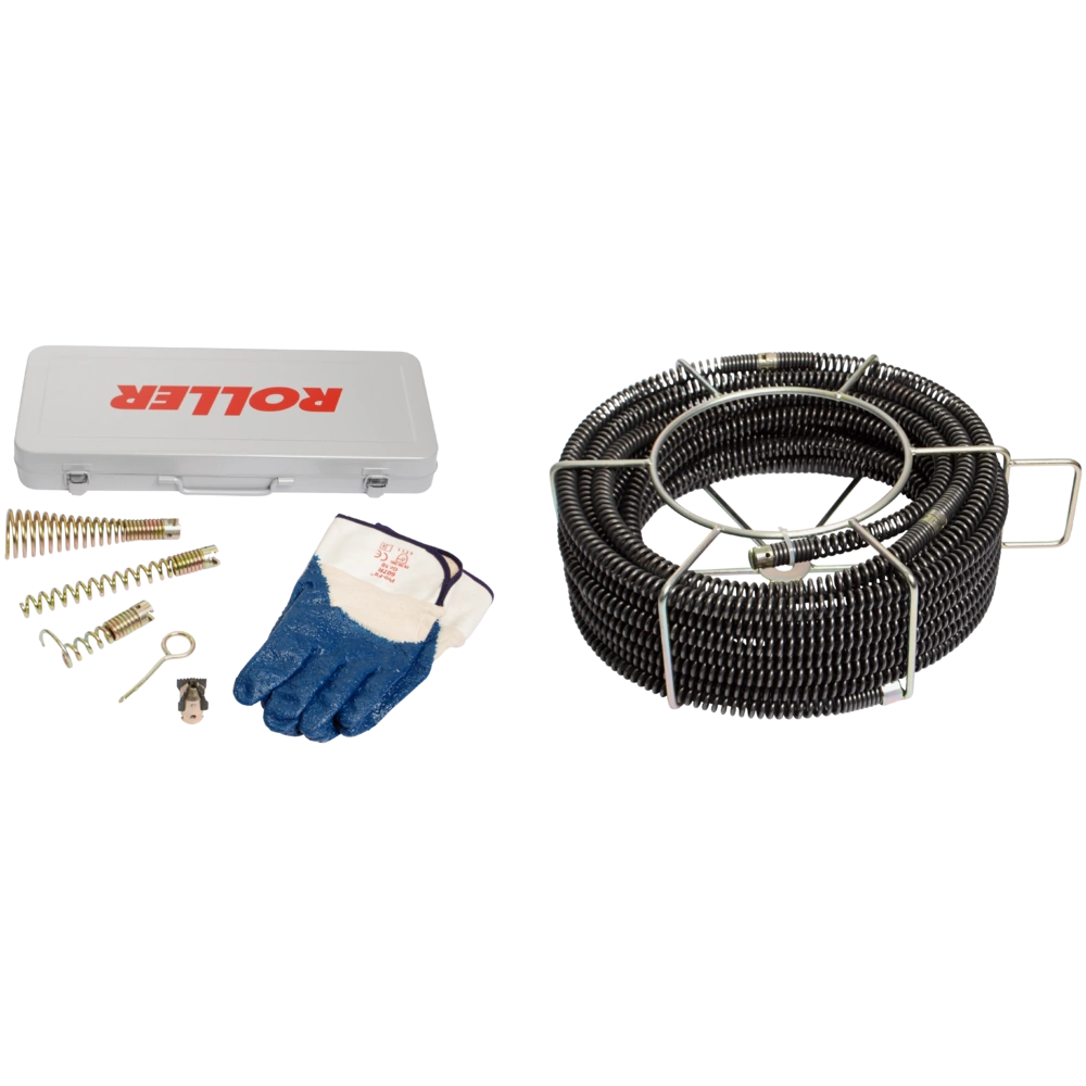 With this practical set, you have everything you need to clear blocked drains, stacks, and risers quickly. The sturdy spirals penetrate reliably into the pipe to break up and remove dirt and deposits effectively, while the matching accessories complete the set so you can work without changing tools. The well-thought-out selection helps you save both time and effort.