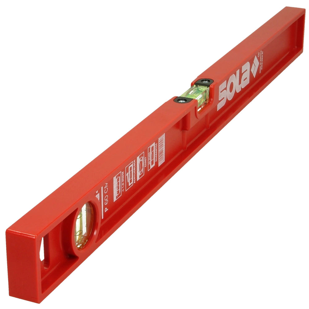 All product informationSola P is a plastic spirit level with low weight and warp-free profile form is ideally suited for tiling because it leaves no signs of abrasion. It is also resistant against water, heat or cold. The manufacturer grants a tightness guarantee of 30 years on the break-resistant acrylic block vials with magnifying lens (+20 %). The SOLA luminous backing ensures a better readability in dim light. Measurements can be carried out horizontally and vertically.