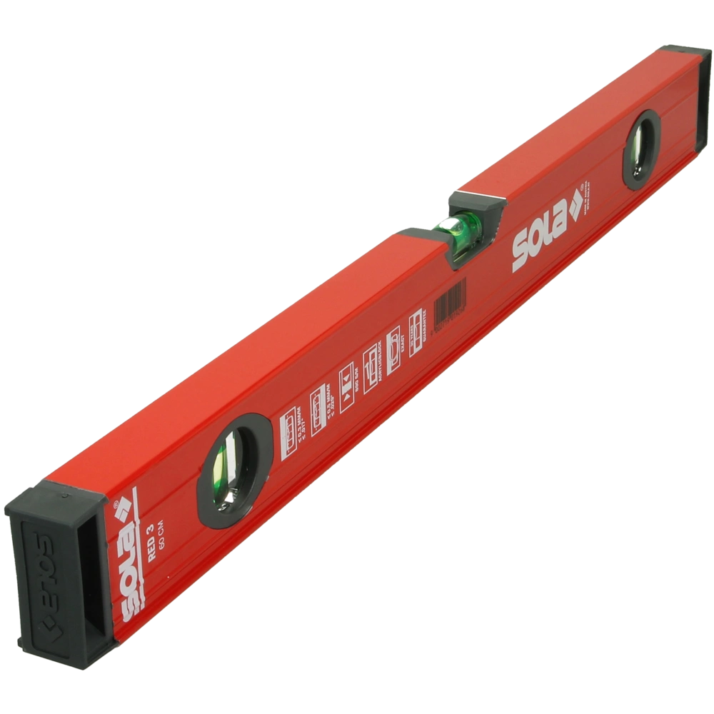 The SOLA RED 3 spirit level is equipped with an extra strong aluminium profile with reinforcing ribs for maximum stability. Better and more accurate reading is ensured due to the patented SOLA-FOCUS vials...