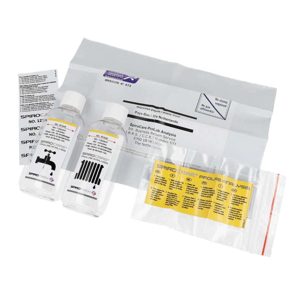 All product information Scope of deliverySystem water analysis kit including lab verification and test report. For the determination of the water quality of heating and cooling water and for the right composition of refill water. With both sample bottles, the filled-in info form and an enclosed prepaid envelope you can send your samples of the heating and cooling water currently in your system and the refill drinking water available on-site directly to the laboratory for analysis. After receipt of the samples, the laboratory specialised on system water analysis will send you a detailed list of the system water and the right mixture for refill water.