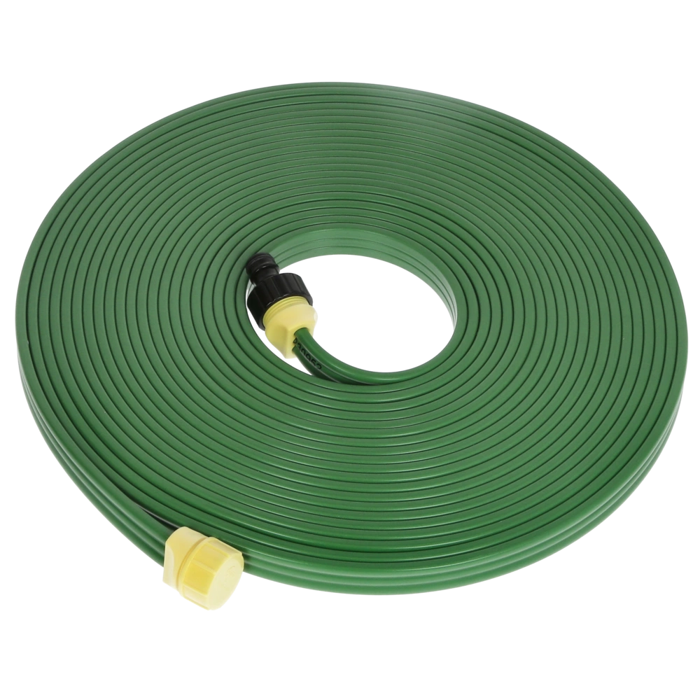 Irrigation hose with three-chamber system for even garden irrigation. The hose is used as a sprinkler, seeping hose or for watering plant roots in flower beds or on the lawn.